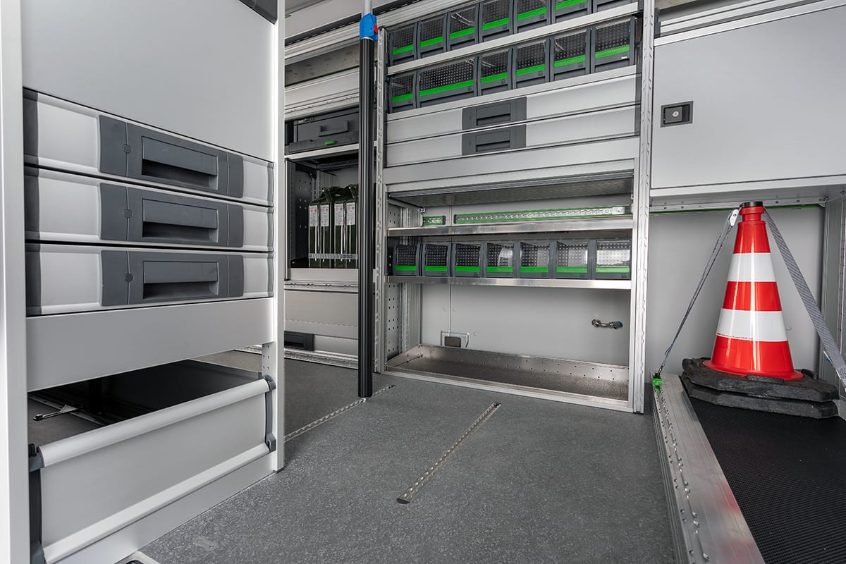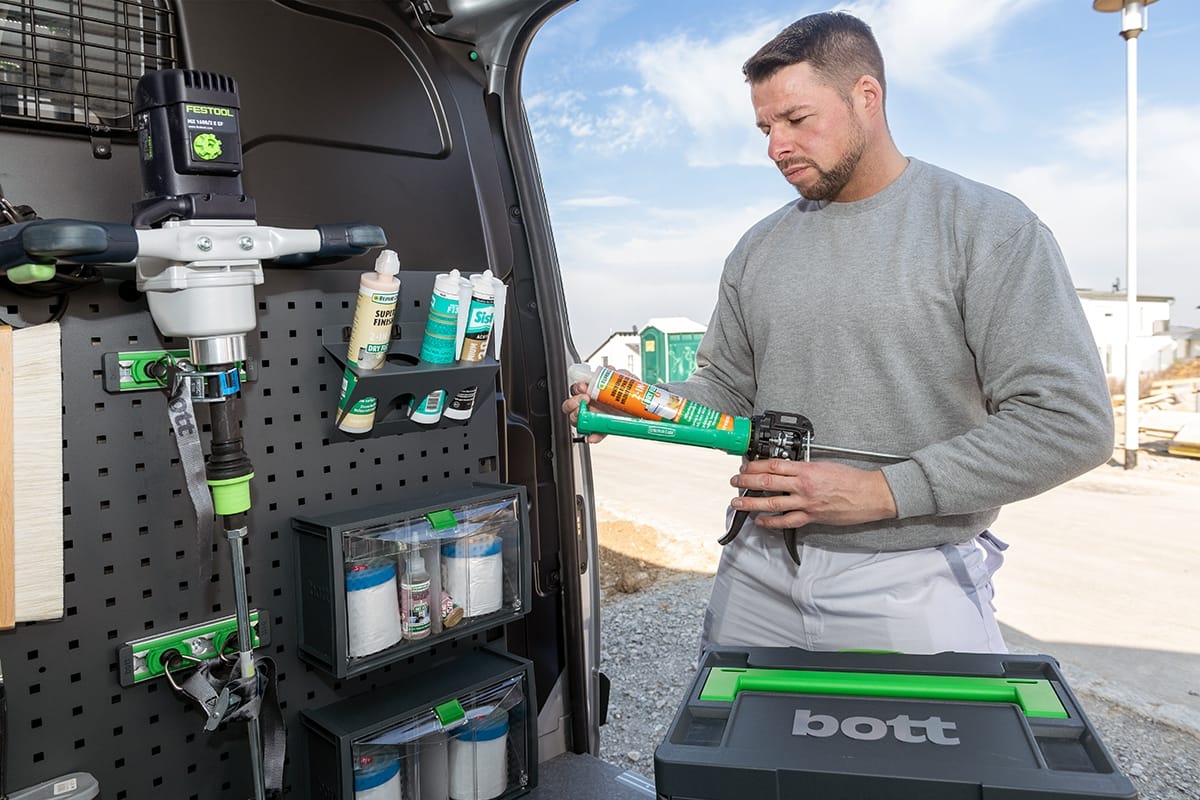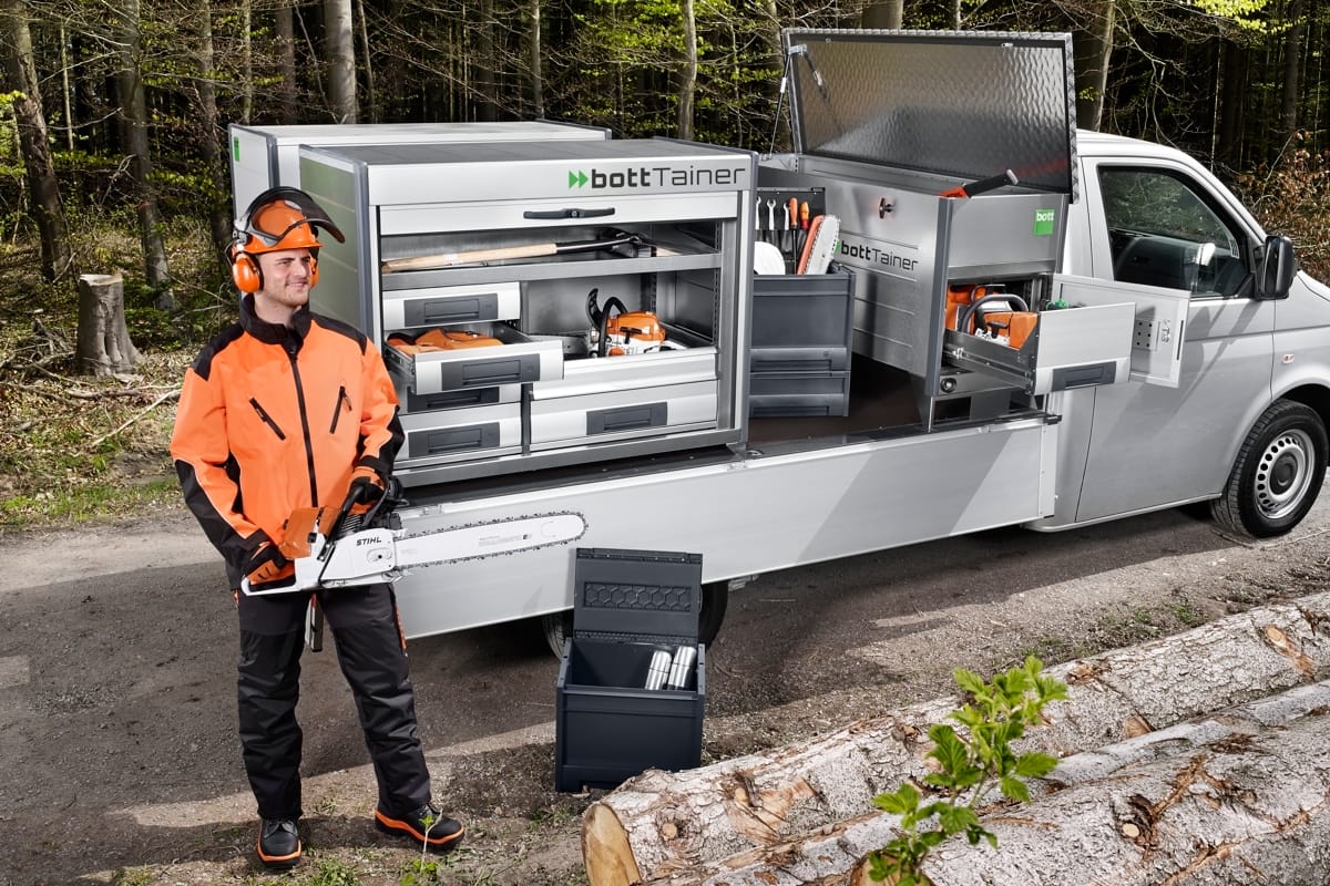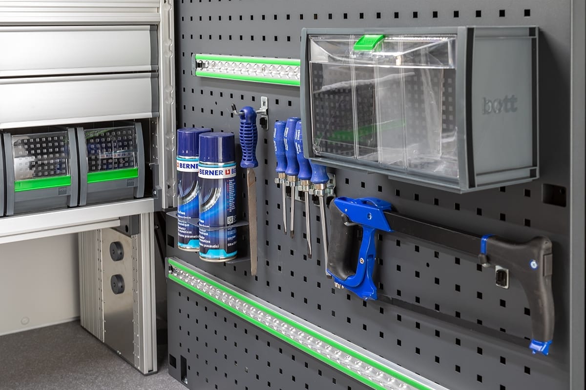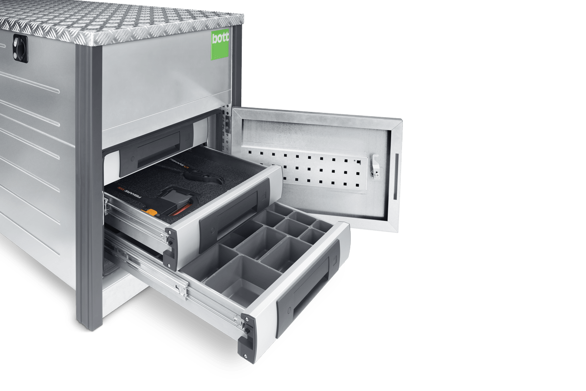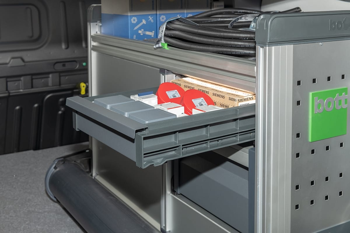 Branchengerecht für höchste Effizienz: Passen Sie Ihr Fahrzeug an Ihre Bedürfnisse an, verwandeln Sie es in eine mobile Werkstatt. Arbeiten Sie und Ihre Mitarbeiter wirtschaftlich, professionell und sicher, mit einer Fahrzeugeinrichtung von bott.