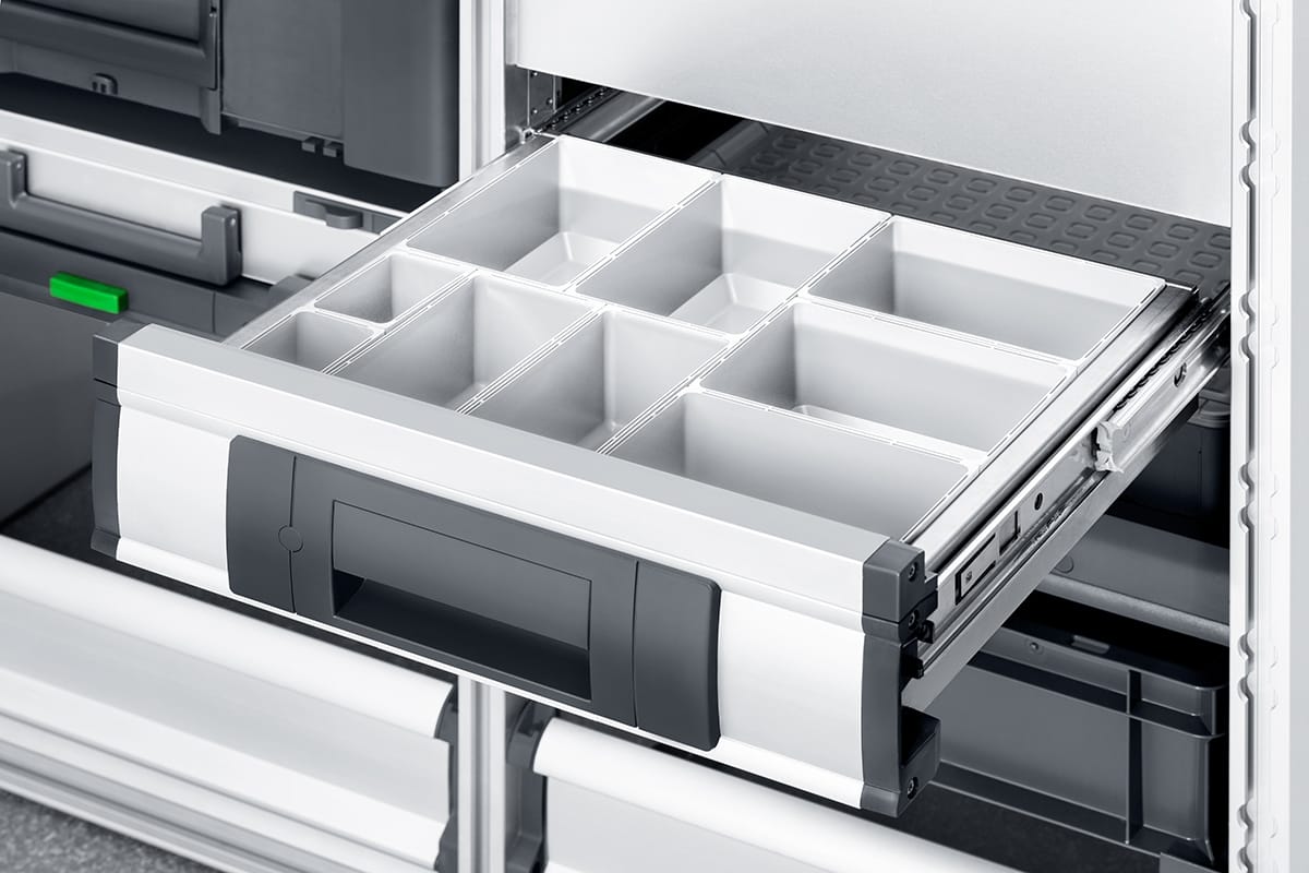 Die bott vario3 Fahrzeugeinrichtung zeichnet sich insbesondere dadurch aus, dass sie viel mehr ist, als einfach nur Regale im Auto. Mit einer Fahrzeuginneneinrichtung, die individuell an Ihre Anforderungen angepasst ist, optimieren Sie die Arbeitsabläufe in Ihrer mobilen Werkstatt. bott verwendet einen intelligenten Materialmix, durch das geringe Gewicht sparen Sie sich eine Menge Kraftstoff.