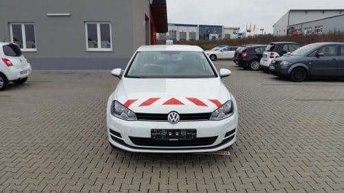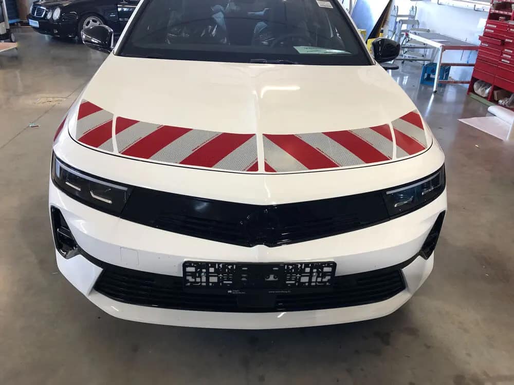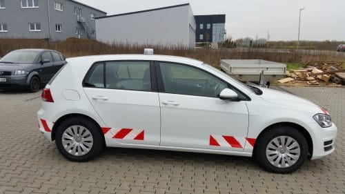 Beispiele Fahrzeugbeschriftung mit Warnmarkierung